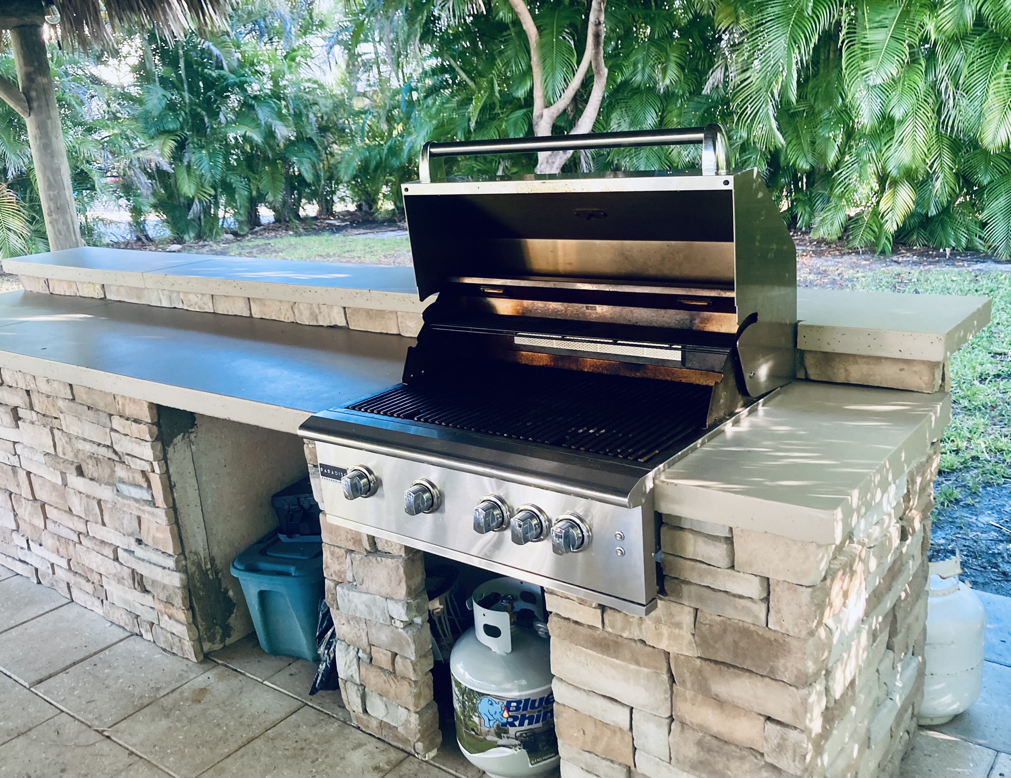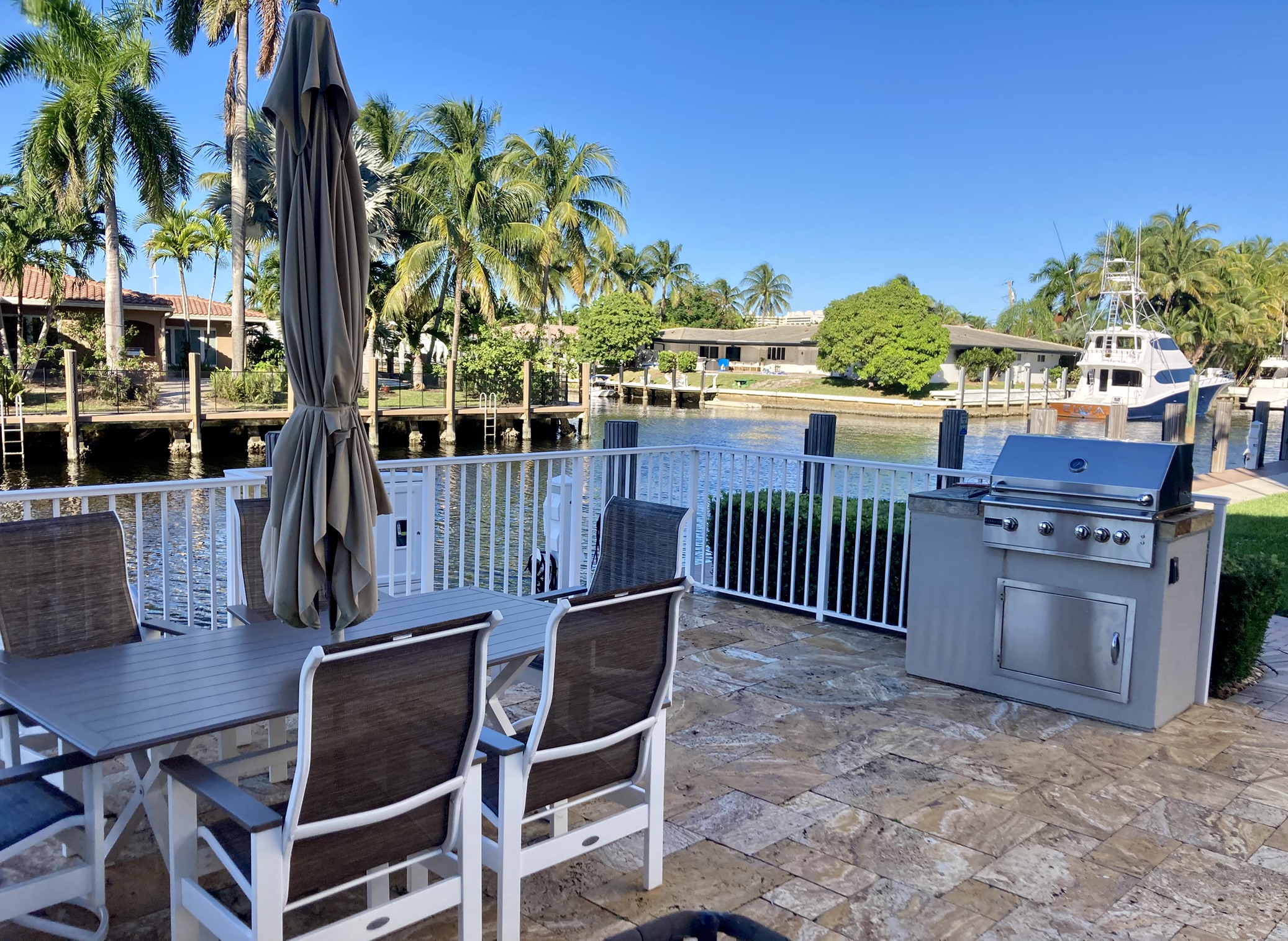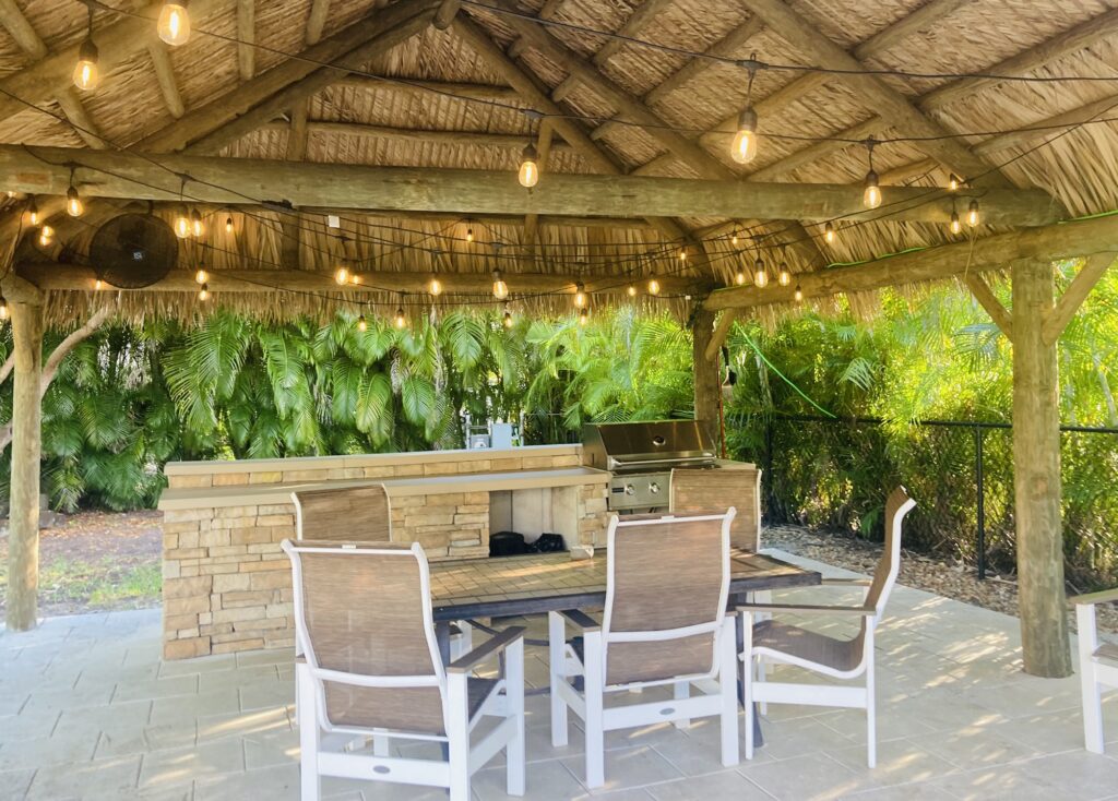Residents enjoy access to thoughtful amenities — a dog park with its own tiki hut, two BBQ areas, and about 700 feet of dock space along the canal, available for rent to boat owners. Whether you’re relaxing by the water or grilling with friends, the common areas are designed for easy, low-key living.